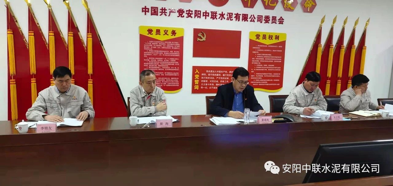 按照中國聯(lián)合水泥黨委關(guān)于認真開好2020年度民主生活會通知要求,2月24日上午,安陽中聯(lián)2020年度黨員領(lǐng)導班子民主生活會在公司黨員活動室召開。中國建材股份黨委常委、執(zhí)行董事、副總裁,中國聯(lián)合水泥黨委書記、董事長崔星太通過視頻連線督導會議并作點評講話。中國聯(lián)合水泥黨群工作部主任侯萍、紀檢監(jiān)察室副主任董治及安陽中聯(lián)黨委委員、領(lǐng)導班子成員參加會議。安陽中聯(lián)黨委書記、總經(jīng)理黃頌高主持會議。